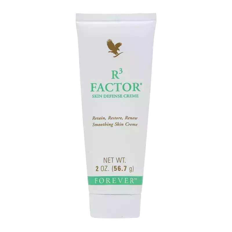 A retirada dessas células faz com que a pele fique mais fresca, mais bonita e absorva muito mais vitaminas e hidratantes aplicados. Assim, é possível receber todos os benefícios dos componentes da fórmula do R3, desde as vitaminas até o efeito calmante e restaurador do aloe. R3 Factor® Skin Defense Creme fornece uma primeira linha de defesa na luta contra os duros efeitos do tempo e fornece o que há de melhor para ajudar a manter a aparência jovem e fresca da pele.